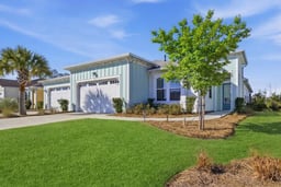 Step into your own slice of paradise with this stunning Barbuda Bay villa, nestled in the serene surroundings of Phase 3 at Latitude Margaritaville Hilton Head. This home offers a tranquil retreat featuring rare lagoon and woods views from your private, screened-in birdcage lanai. Inside, you'll find the largest kitchen in the Villa Collection, perfectly integrated with a spacious dining area and a great room that feels even more expansive thanks to the triple sliders that blur the line between indoor and outdoor living. The thoughtfully designed layout includes 2 bedrooms, 2 full baths, and a versatile office/den, plus a dedicated laundry room and a 2-car garage. Best of all, you are just a short walk from the vibrant Town Square, where world-class amenities like the Fins Up! Fitness Center and the Latitude Bar & Chill await.